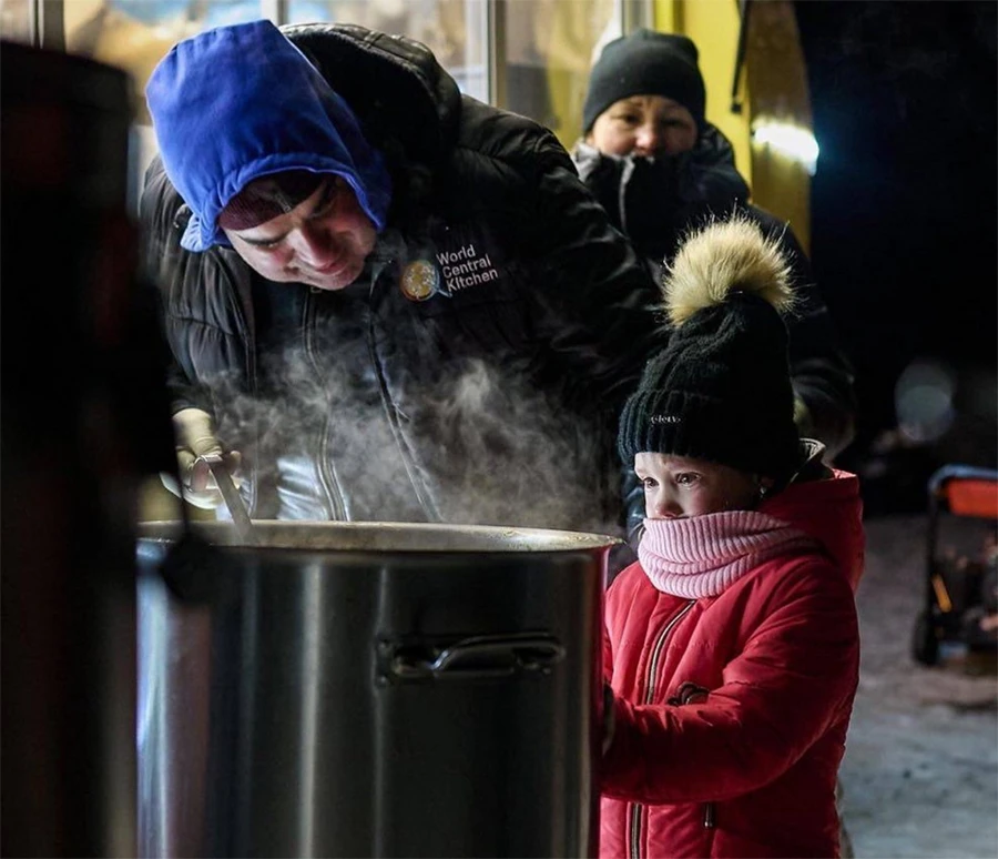 На фоне замерзающей под бомбежками Украины.