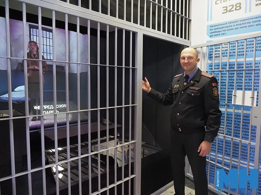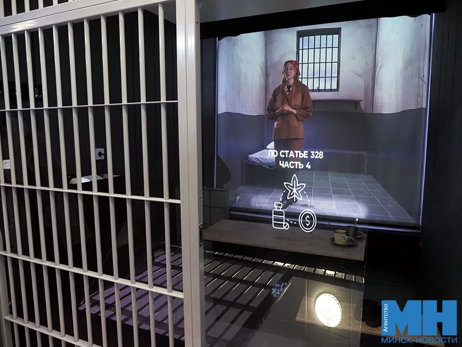 Камера — объект с элементами дополненной реальности: кровать и решетки настоящие, заверили в ГУВД, а вместо осужденных — проекции. Виртуальный подросток рассказывает сверстникам, как попал в колонию за участие в «закладках».