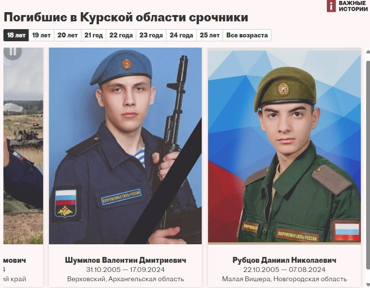 Как минимум 60 российских срочников, находившихся в Курской области к началу украинского наступления, погибли летом и осенью 2024 года, подсчитали Важные истории на основе сообщений в СМИ, публикаций родственников в соцсетях и данных из реестра наследственных дел.